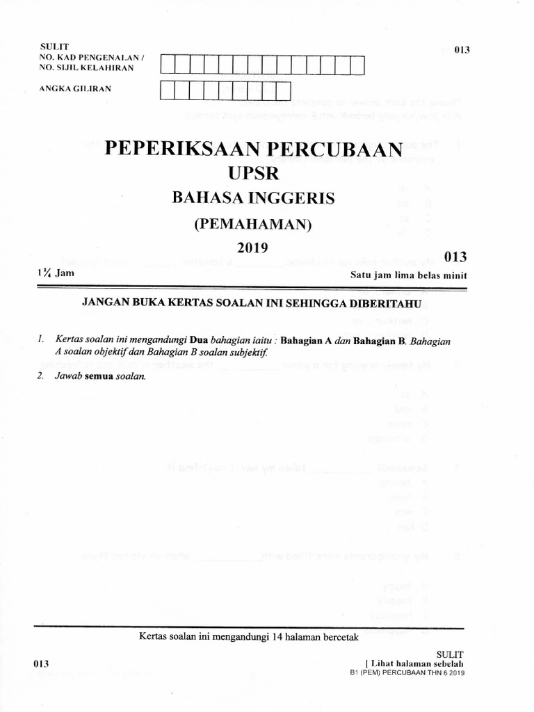 Soalan Ramalan Upsr 2019 Bahasa Inggeris : Kami membantu ibu bapa yang mempunyai anak yang bakal menduduki peperiksaan upsr 2019 untuk bersedi.. Berikut dikongsikan adalah maklumat tentang contoh soalan ramalan spm yang merangkumi pelbagai subjek sebagai panduan buat pelajar. Koleksi kertas soalan peperiksaan percubaan bahasa inggeris (english) upsr 2020, 2019, 2018, 2017 + skema jawapan. Berikut merupakan kertas soalan upsr 2019 untuk mata pelajaran bahasa melayu, termasuklah bahagian pemahaman dan bahagian penulisan. Koleksi soalan percubaan upsr 2019 dan skema jawapan via www.permohonan.my. Home soalan upsr soalan ramalan upsr bahasa inggeris penulisan 2019.