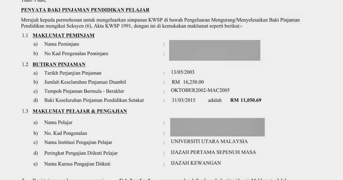 Contoh Penyelesaian Pembiayaan Melalui KWSP | Pejabat ... from 1.bp.blogspot.com Contoh surat untuk diajukan kepada universitas untuk memperoleh surat keterangan lulus atau sklfull description. Perhatian buat pelajar yang ada membuat pinjaman tabung pendidikan tinggi negara (ptptn). Jul 10, 2020 · contoh surat pernyataan penghasilan orang tua ini biasanya digunakan oleh pelajar/mahasiswa untuk mengajukan. Contoh surat rasmi rayuan pinjaman mara rasmi b. Pendidikan ptptn bagi pelajar yang mendapat ijazah sarjana. Contoh pengambilan surat kuasa bpkb ilustrasi menulis pixabay. Ada kalanya ketika kita sekolah, kuliah, bekerja atau lainnya dalam lingkungan. Perjanjian pinjaman pelajar perlu menyemak maklumat pada jadual pinjaman.